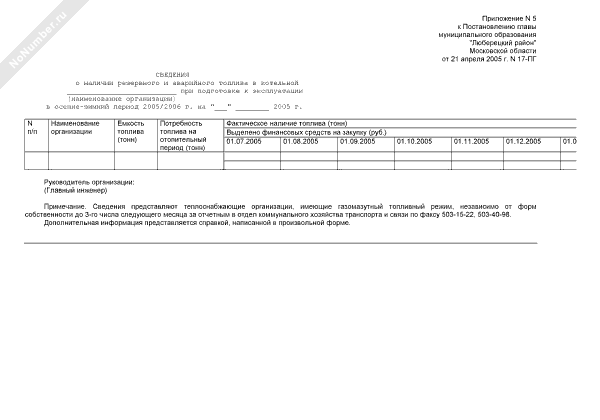 - 919Сведения о наличии резервного и аварийного топлива в котельной при подготовке к эксплуатации в осенне-зимний период на территории Люберецкого района Московской области