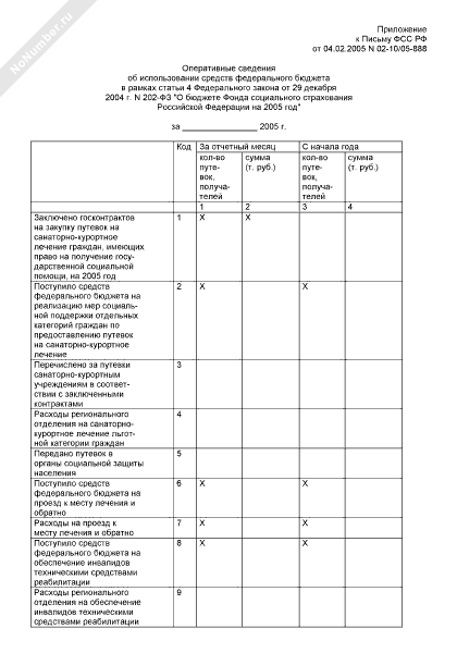 - 84Оперативные сведения об использовании средств федерального бюджета в рамках статьи 4 Федерального закона от 29 декабря 2004 г. № 202-ФЗ «О бюджете Фонда социального страхования Российской Федерации на 2005 год»