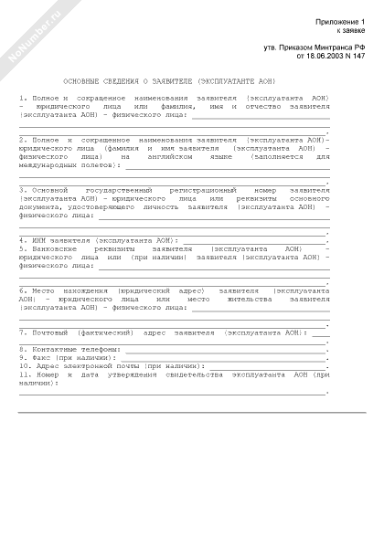 - 90Основные сведения о заявителе (эксплуатанте АОН) (приложение к заявке на регистрацию в качестве эксплуатанта авиации общего назначения))