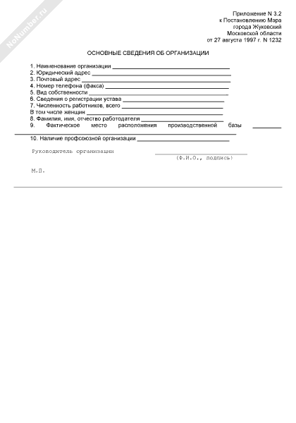 - 89Основные сведения об организации соискателя лицензии по некоторым видам предпринимательской деятельности в городе Жуковский Московской области (для получения заключения о соблюдении законодательных и иных нормативных актов об охране труда)