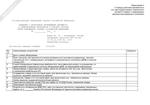 - 1008Сведения о незаконном перемещении делящихся и радиоактивных материалов и опасных отходов через таможенную границу Российской Федерации (форма № 20)