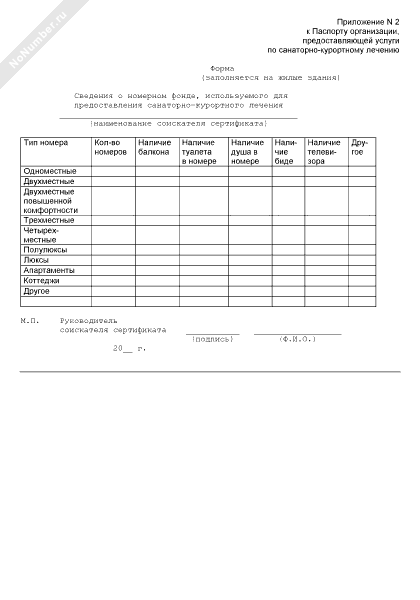 - 1013Сведения о номерном фонде, используемого для предоставления санаторно-курортного лечения (приложение к паспорту организации, предоставляющей услуги по санаторно-курортному лечению)