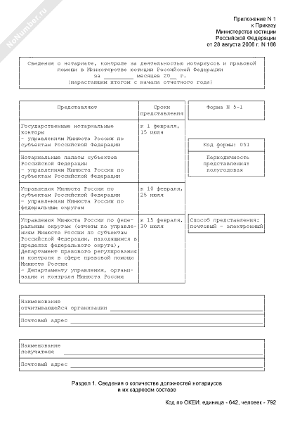 - 1018Сведения о нотариате, контроле за деятельностью нотариусов и правовой помощи в Министерстве юстиции Российской Федерации. Форма № 5-1