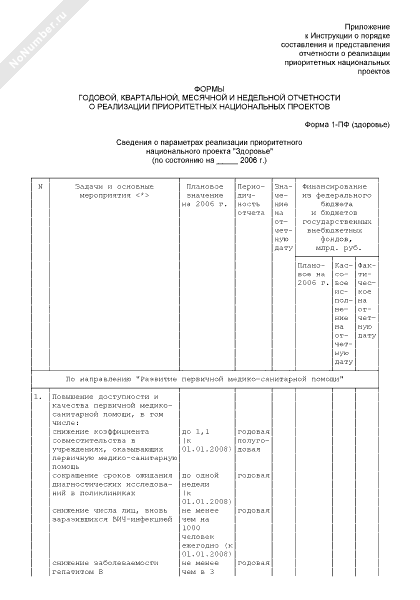 - 1020Сведения о параметрах реализации приоритетного национального проекта «Здоровье». Форма № 1-ПФ (здоровье)