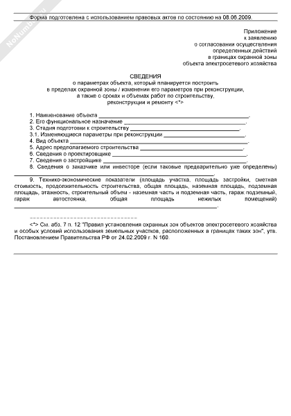- 1022Сведения о параметрах объекта, который планируется построить в пределах охранной зоны / изменении его параметров при реконструкции, а также о сроках и объемах работ по строительству, реконструкции и ремонту (приложение к заявлению о согласовании осуществления определенных действий в границах охранной зоны объекта электросетевого хозяйства)