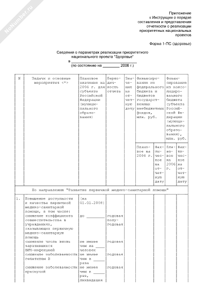 - 1021Сведения о параметрах реализации приоритетного национального проекта «Здоровье». Форма № 1-ПС (здоровье)
