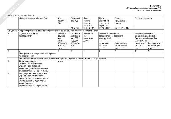 - 1023Сведения о параметрах реализации приоритетного национального проекта «Образование». Форма № 1-ПС (образование)