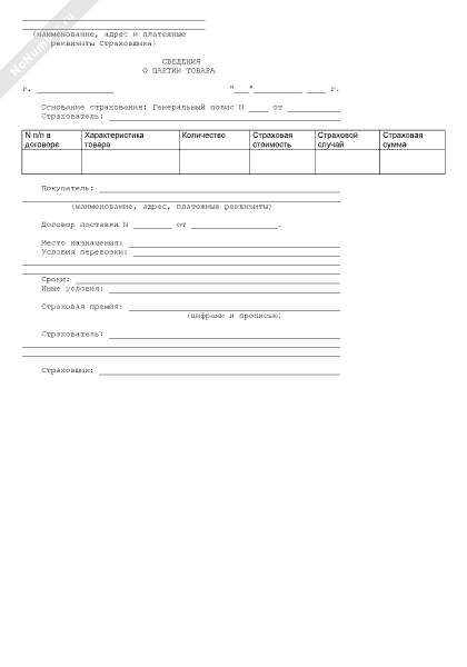 - 1025Сведения о партии товара (приложение к договору страхования партии товара)