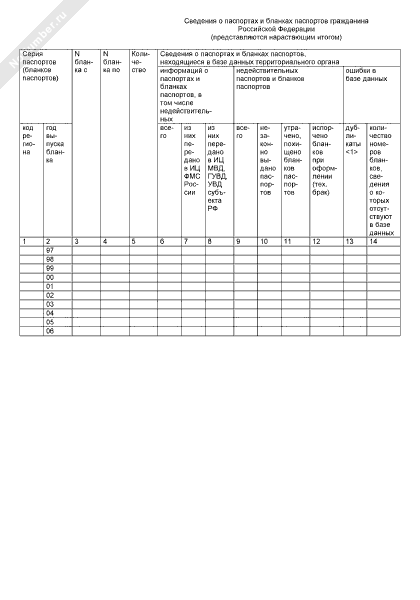 - 1030Сведения о паспортах и бланках паспортов гражданина Российской Федерации. Форма № 1-ПР-АВТ