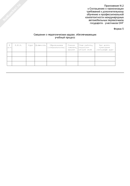 - 1033Сведения о педагогических кадрах, обеспечивающих учебный процесс в учебной организации государств-участников СНГ, осуществляющей дополнительное обучение с целью повышения уровня профессиональной компетентности международных автомобильных перевозчиков (форма № 5)