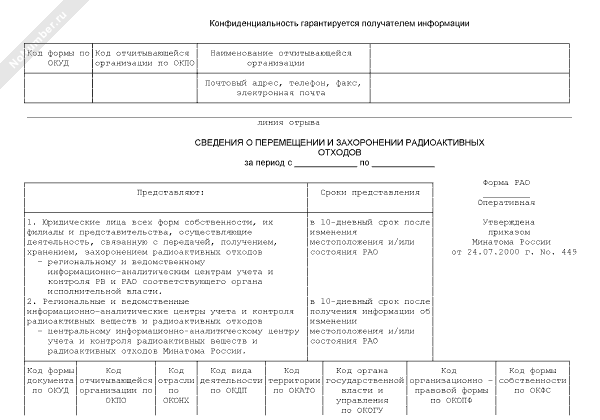 - 1040Сведения о перемещении и захоронении радиоактивных отходов. Форма № РАО (оперативная)