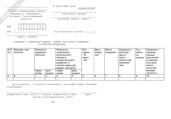 - 1035Сведения о первичной выдаче, замене паспортов гражданам Российской Федерации. Форма № ЗП