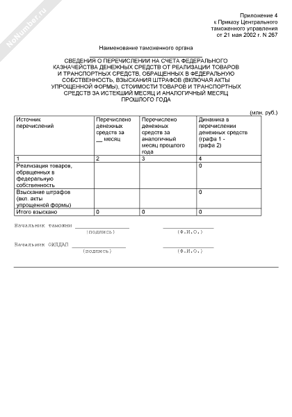 - 1053Сведения о перечислении на счета Федерального казначейства денежных средств от реализации товаров и транспортных средств, обращенных в федеральную собственность, взыскания штрафов (включая акты упрощенной формы), стоимости товаров и транспортных средств за истекший и предыдущий месяц