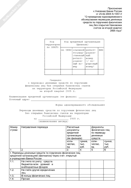 - 1048Сведения о переводах денежных средств по поручению физических лиц без открытия банковских счетов на территории Российской Федерации за второй квартал 2005 г.