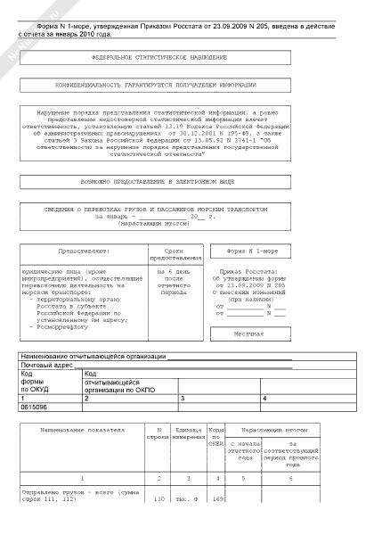 - 1058Сведения о перевозках грузов и пассажиров морским транспортом. Форма № 1-море