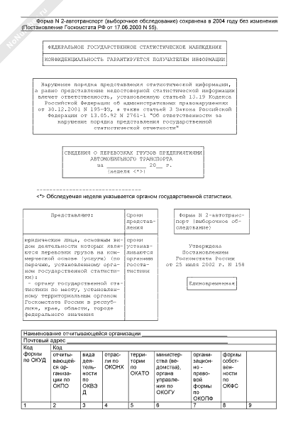 - 1042Сведения о перевозках грузов предприятиями автомобильного транспорта. Форма № 2-автотранспорт (выборочное обследование)