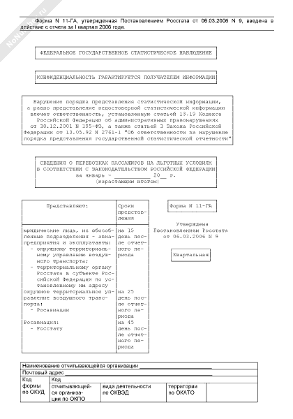 - 1051Сведения о перевозках пассажиров на льготных условиях в соответствии с законодательством Российской Федерации. Форма № 11-ГА