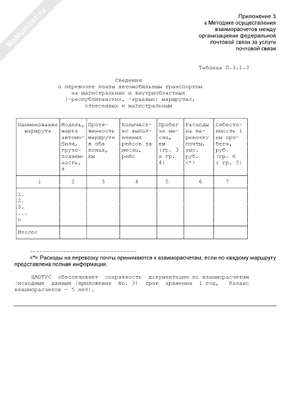 - 1044Сведения о перевозке почты автомобильным транспортом на магистральных и внутриобластных (-республиканских, -краевых) маршрутах, отнесенных к магистральным (таблица п. 3.1.3)