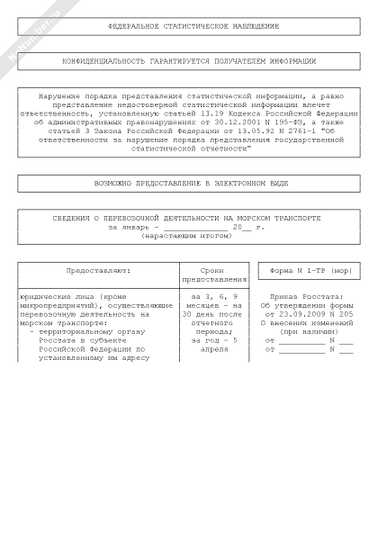 - 1060Сведения о перевозочной деятельности на морском транспорте. Форма № 1-ТР (мор)