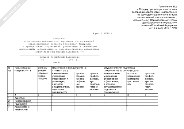- 1089Сведения о подготовке медицинского персонала для учреждений здравоохранения субъекта Российской Федерации и муниципальных образований, участвующих в реализации мероприятий, направленных на совершенствование организации онкологической помощи населению субъекта Российской Федерации. Форма № МОПН-К