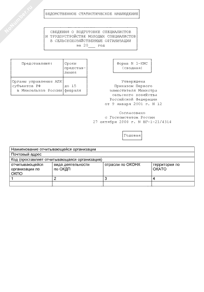 - 1088Сведения о подготовке специалистов и трудоустройстве молодых специалистов в сельскохозяйственные организации. Форма № 1-КМС (сводная)