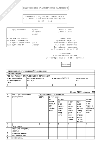 - 1087Сведения о подготовке специалистов в аграрных образовательных учреждениях. Форма № 1-КМС (образование)