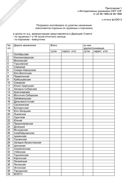 - 1085Сведения о погруженных контейнерах по дорогам назначения (приложение к форме № КЭО-3)