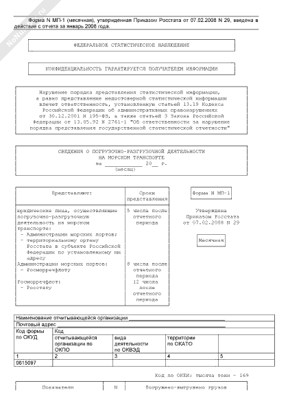 - 1086Сведения о погрузочно-разгрузочной деятельности на морском транспорте. Форма № МП-1 (месячная)