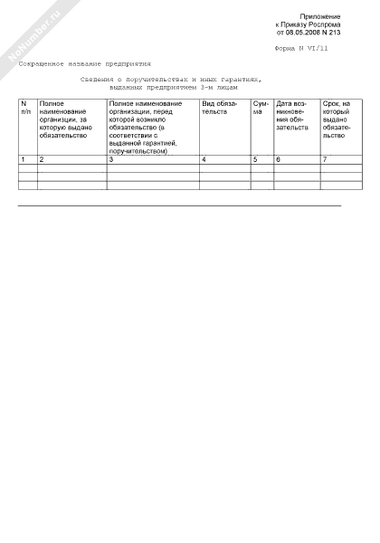 - 1127Сведения о поручительствах и иных гарантиях, выданных предприятием 3-м лицам. Форма № VI/11