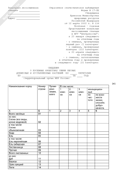 - 1128Сведения о посевных качествах семян лесных древесных и кустарниковых растений. Форма № 17-ЛХ