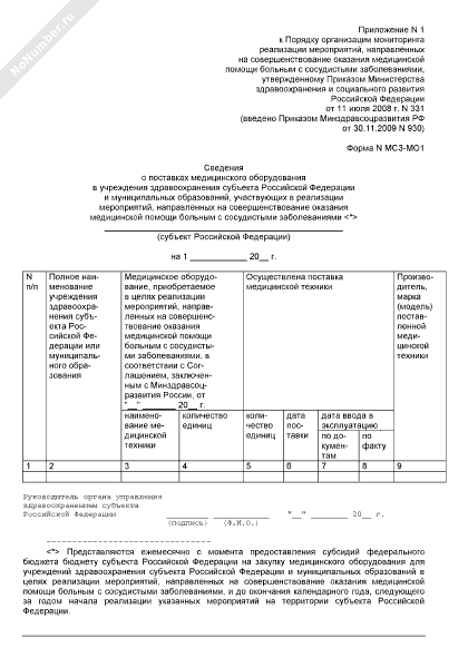 - 1139Сведения о поставках медицинского оборудования в учреждения здравоохранения субъекта Российской Федерации и муниципальных образований, участвующих в реализации мероприятий, направленных на совершенствование оказания медицинской помощи больным с сосудистыми заболеваниями. Форма № МСЗ-МО1