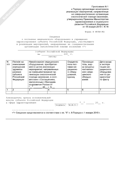 - 1136Сведения о поставках медицинского оборудования в учреждения здравоохранения субъекта Российской Федерации, участвующего в реализации мероприятий, направленных на совершенствование организации онкологической помощи населению субъекта Российской Федерации. Форма № МОПН-МО