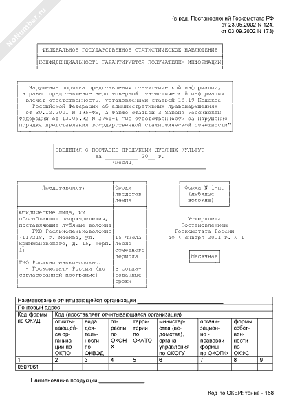 - 1131Сведения о поставке продукции лубяных культур. Форма № 1-ПС (лубяные волокна)