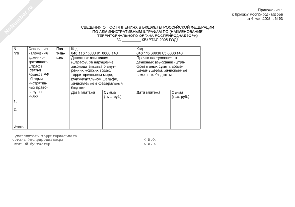 - 1134Сведения о поступлениях в бюджеты Российской Федерации по административным штрафам по территориальному органу Росприроднадзора за квартал