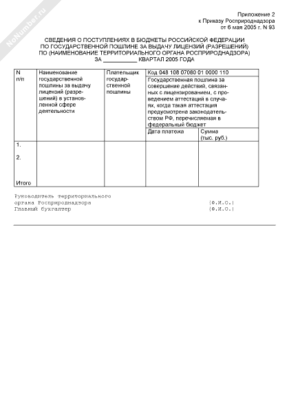 - 1135Сведения о поступлениях в бюджеты Российской Федерации по государственной пошлине за выдачу лицензий (разрешений) по территориальному органу Росприроднадзора за квартал