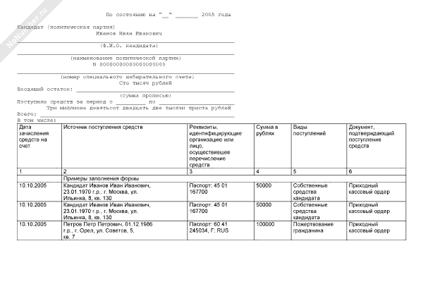 - 1169Сведения о поступлении денежных средств на специальный избирательный счет избирательного фонда кандидата, политической партии