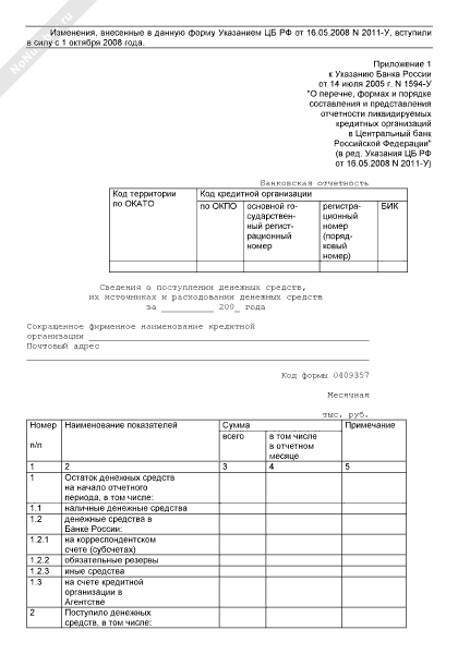 - 1167Сведения о поступлении денежных средств, их источниках и расходовании денежных средств. Форма № 0409357