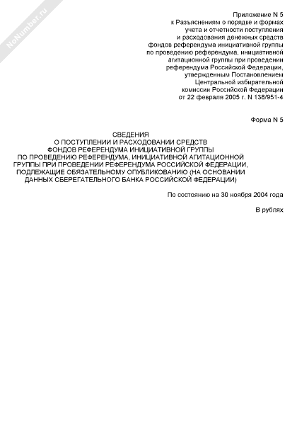 - 1163Сведения о поступлении и расходовании средств фондов референдума инициативной группы по проведению референдума, инициативной агитационной группы при проведении референдума Российской Федерации, подлежащие обязательному опубликованию (на основании данных Сберегательного банка Российской Федерации) (форма № 5)