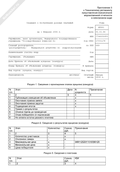 - 1180Сведения о поступлении разовых платежей, связанных с проведением аукционов (конкурсов) по участкам недр. Форма № АП001