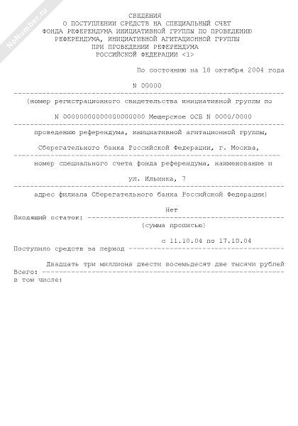 - 1162Сведения о поступлении средств на специальный счет фонда референдума инициативной группы по проведению референдума, инициативной агитационной группы при проведении референдума Российской Федерации (форма № 3)