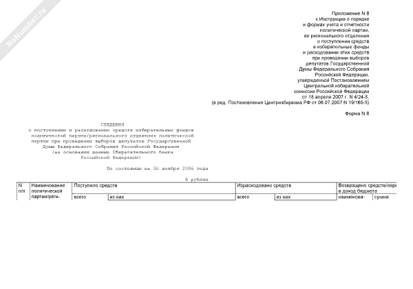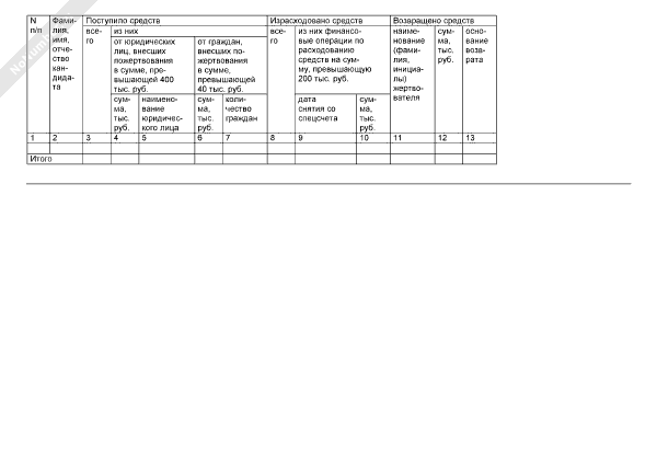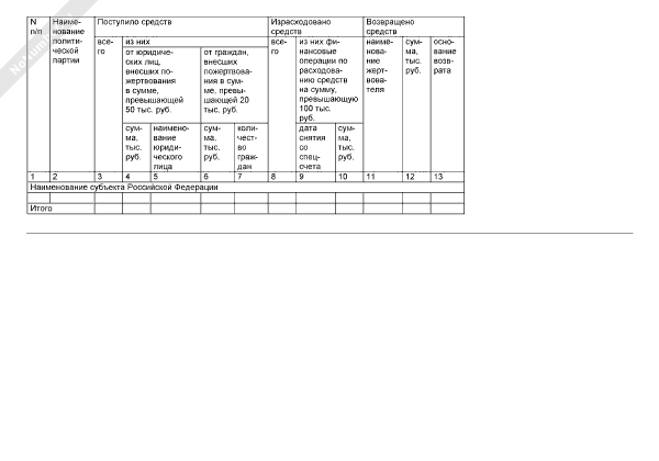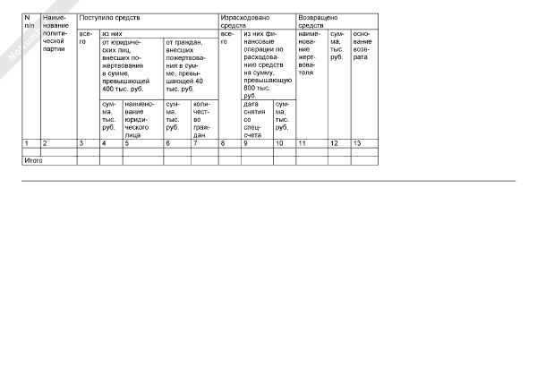 - 1197Сведения о поступлении средств на специальный избирательный счет избирательного фонда политической партии/регионального отделения политической партии при проведении выборов депутатов Государственной Думы Федерального Собрания Российской Федерации (форма № 6)