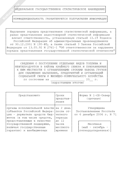 - 1194Сведения о поступлении отдельных видов топлива и нефтепродуктов в районы Крайнего Севера и приравненные к ним местности с ограниченными сроками завоза грузов для снабжения населения, предприятий и организаций социальной сферы и жилищно-коммунального хозяйства. Форма № 1-СБ-Север (срочная)