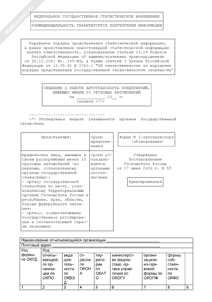 - 1489Сведения о работе автотранспорта предприятий, имеющих менее 10 грузовых автомобилей. Форма № 1-автотранспорт (обследование)
