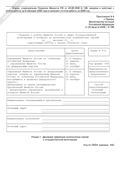 - 1483Сведения о работе Минюста России в сфере государственной регистрации и контроля за деятельностью политических партий. Форма № 9-4