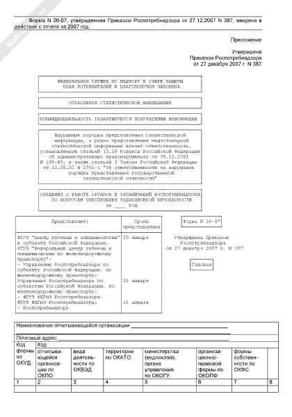 - 1491Сведения о работе органов и организаций Роспотребнадзора по вопросам обеспечения радиационной безопасности. Форма № 26-07