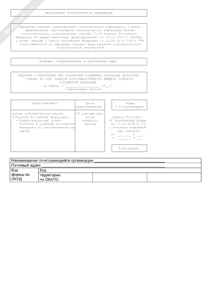 - 1641Сведения о реализации мер социальной поддержки отдельных категорий граждан за счет средств консолидированного бюджета субъекта Российской Федерации. Форма № 3-соцподдержка (полугодовая)
