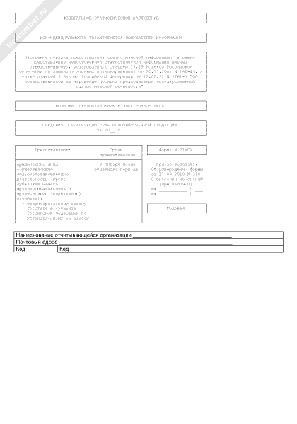 - 1645Сведения о реализации сельскохозяйственной продукции. Форма № 21-СХ (годовая)