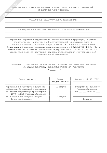 - 1642Сведения о реализации ведомственных целевых программ при переходе на бюджетирование, ориентированное на результат. Форма № 11-09 (БОР)