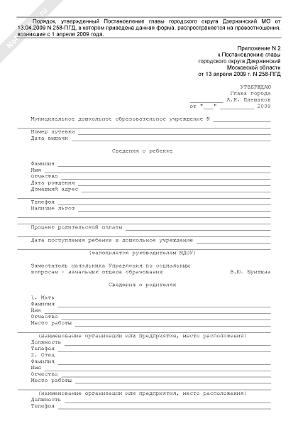 - 1646Сведения о ребенке, необходимые при получении места в муниципальном дошкольном образовательном учреждении городского округа Дзержинский Московской области