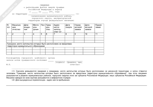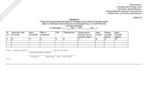 - 1651Сведения о регистрации фактов смерти граждан Российской Федерации, место жительства которых не находилось на территории города Москвы (форма № 12)